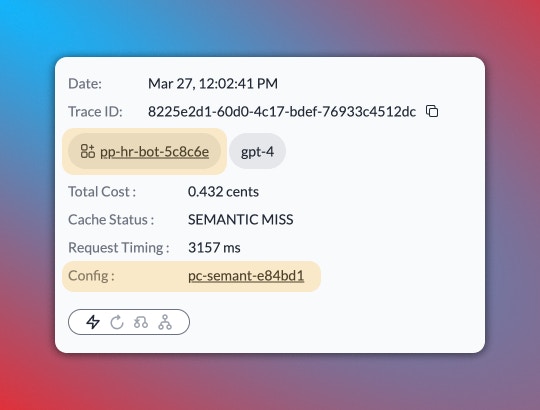 The Status column on the Logs page gives you a snapshot of the gateway activity for every request. Portkey’s gateway features—Cache, Retries, Fallback, Loadbalance are tracked here with their exact states (disabled, triggered, etc.), making it a breeze to monitor and optimize your usage. Common Queries Answered: