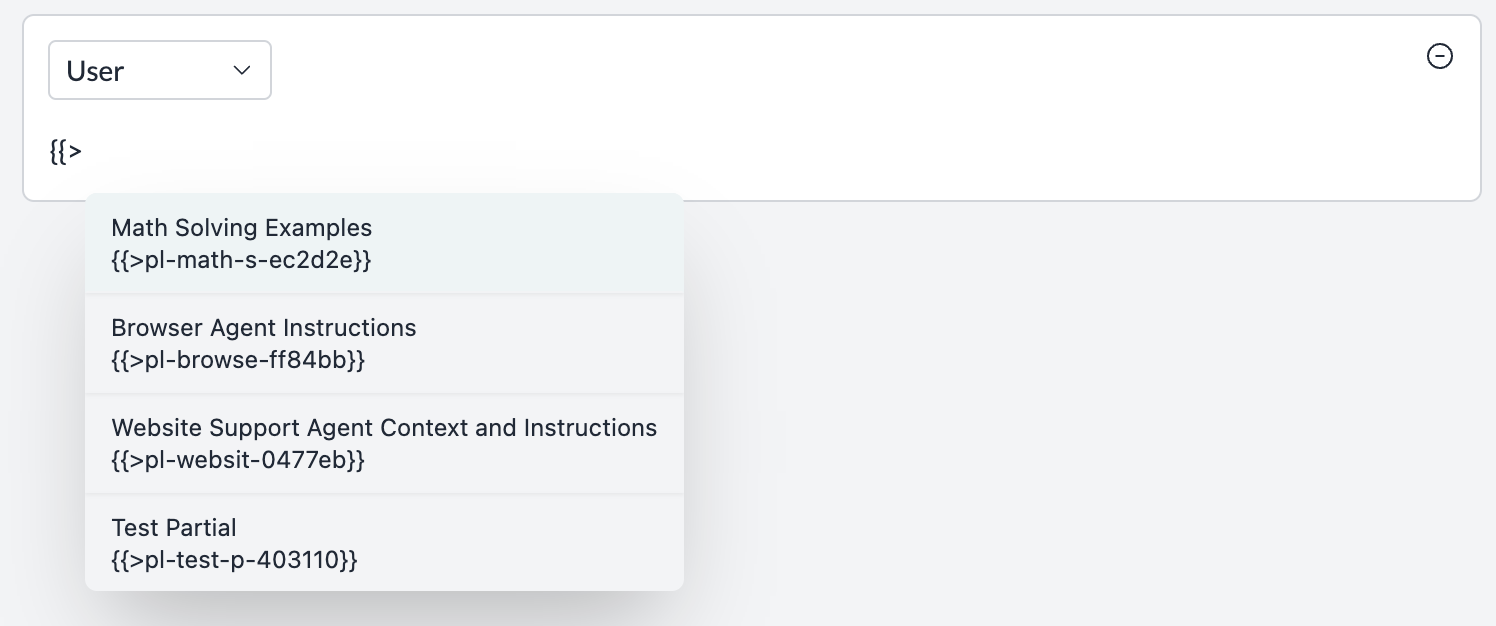 • Use Prompt Versioning to track changes to your partials